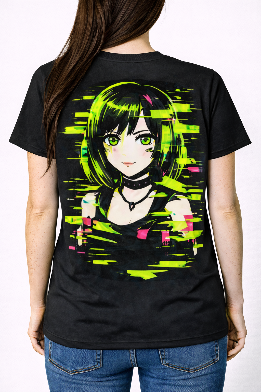 Neon Glitch Anime Girl T-Shirt – Cyberpunk Streetwear Edition